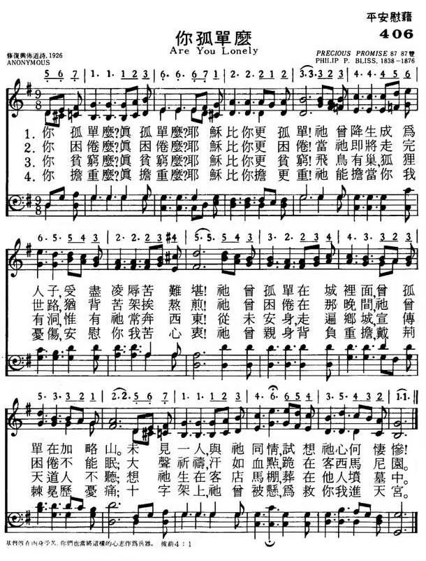 诗歌作者:(美)腓力·白力斯(Philip P.Bliss,1838-1876)曲