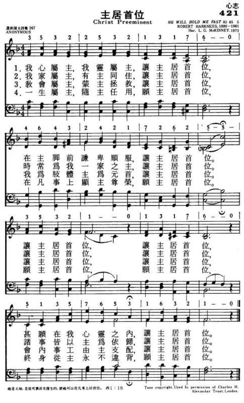 甚愿在我心灵之内,让主居首位。