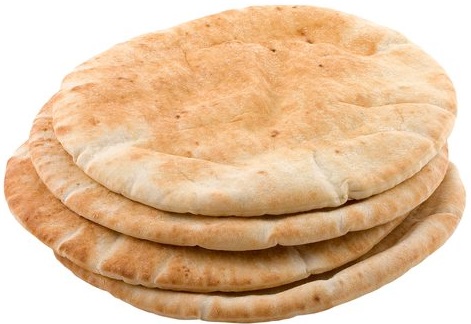 上图:皮塔饼(Pita)是以色列常见的有酵饼,主前2500年就出现于美索不达米亚。Pita饼只稍稍发酵,中间由蒸汽膨胀形成一个口袋,面饼冷却后变得平坦,里面有一个口袋。