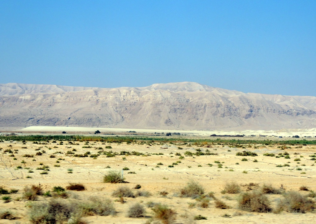 上图:从死海盆地向西看犹大旷野边缘的悬崖。犹大旷野大多地方是「干旱无水之地」(结十九13),几乎寸草不生,是「沙漠有深坑之地,和干旱死荫、无人经过、无人居住之地」(耶二6),但也有许多旱溪有「草场」适合游牧(耶九10),能牧放耐旱的山羊和绵羊。旷野之名Midbar就是「牧放」的意思,大卫少年时就在犹大旷野牧羊(撒上十七28),摩西内兄的后裔「基尼人」也住在犹大的旷野(士一16)。疲乏的旅客走过「旷野中一切净光的高处」时(耶十二12),也许会在枝条细长如棒的「罗腾树」下遮阴(王上十九4,5),或者在枝叶浓密的「杜松」下歇息(耶四十八6),看到「野驴」(伯三十九6;耶二24)在疏落的草木间寻找食物,也会遇见「野山羊」在死海西岸隐·基底附近的悬崖出没(撒上二十四2),还可能看到鹈鹕(诗一百零二6)、鸵鸟(哀四3)。今天的犹大旷野人烟稀少,只有贝都因人游牧于此,至今仍保持古代的生活方式。