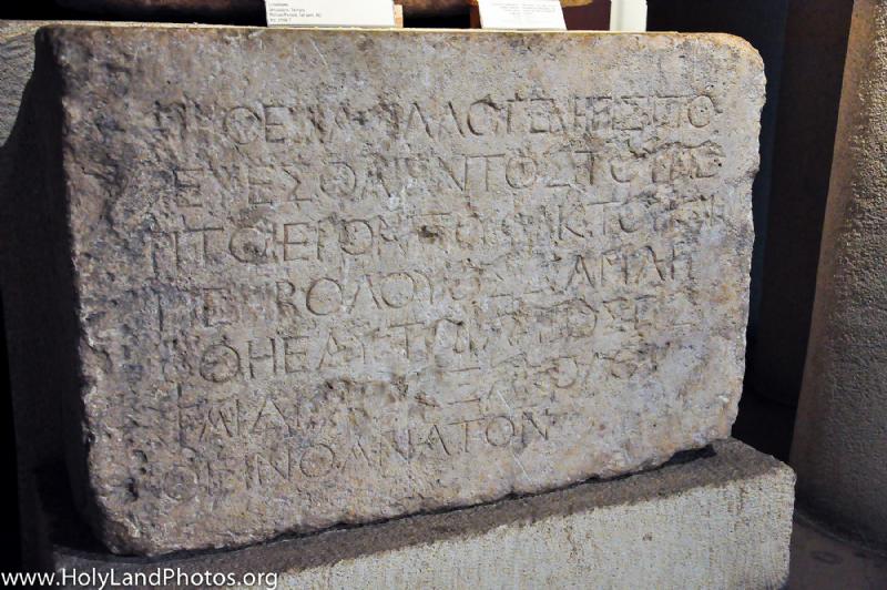 上图:考古学家发掘到的圣殿石碑。上面用希腊文刻着:外邦人不得进入围绕圣殿及四周地域的矮栏。违例者处死,咎由自取。