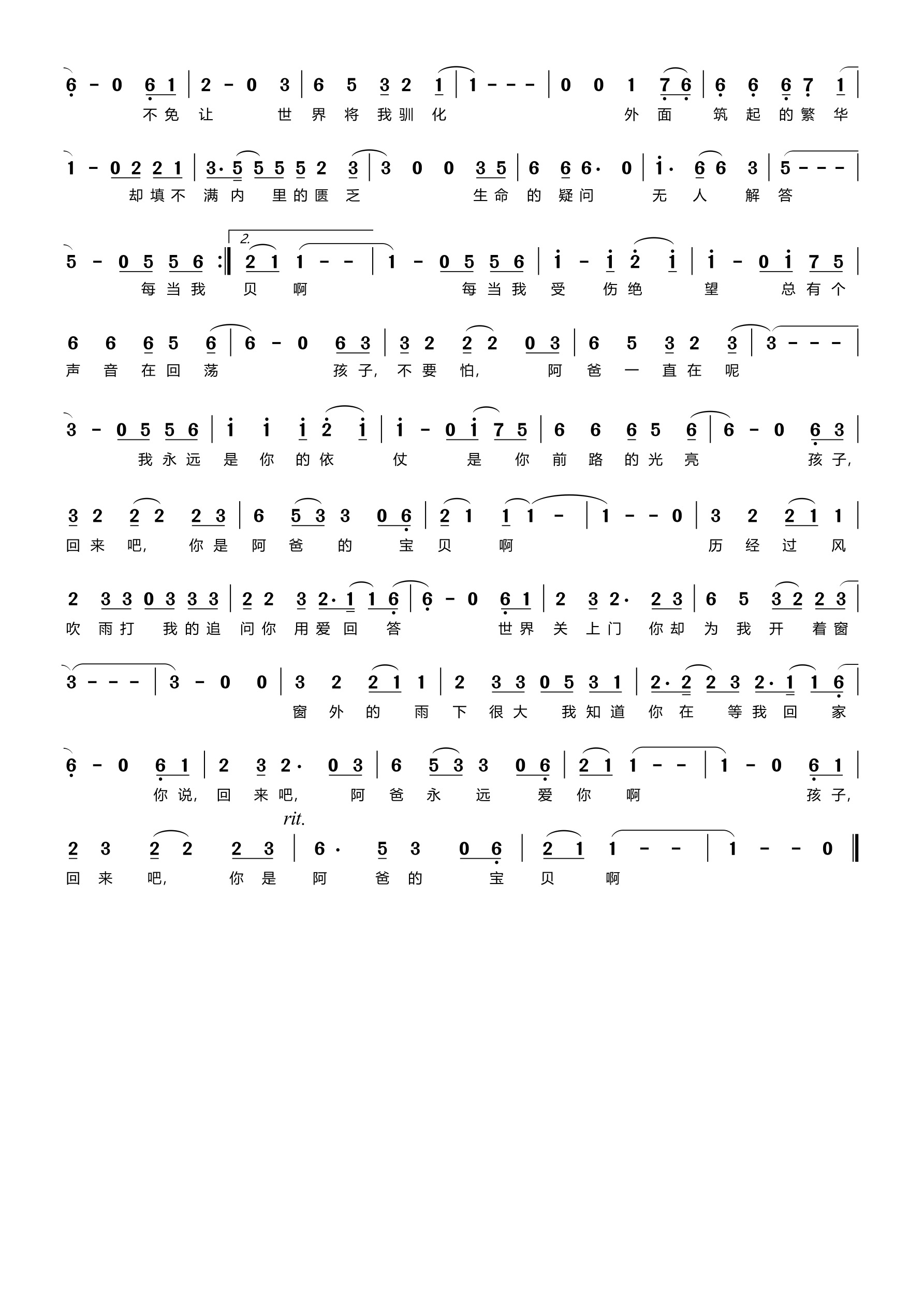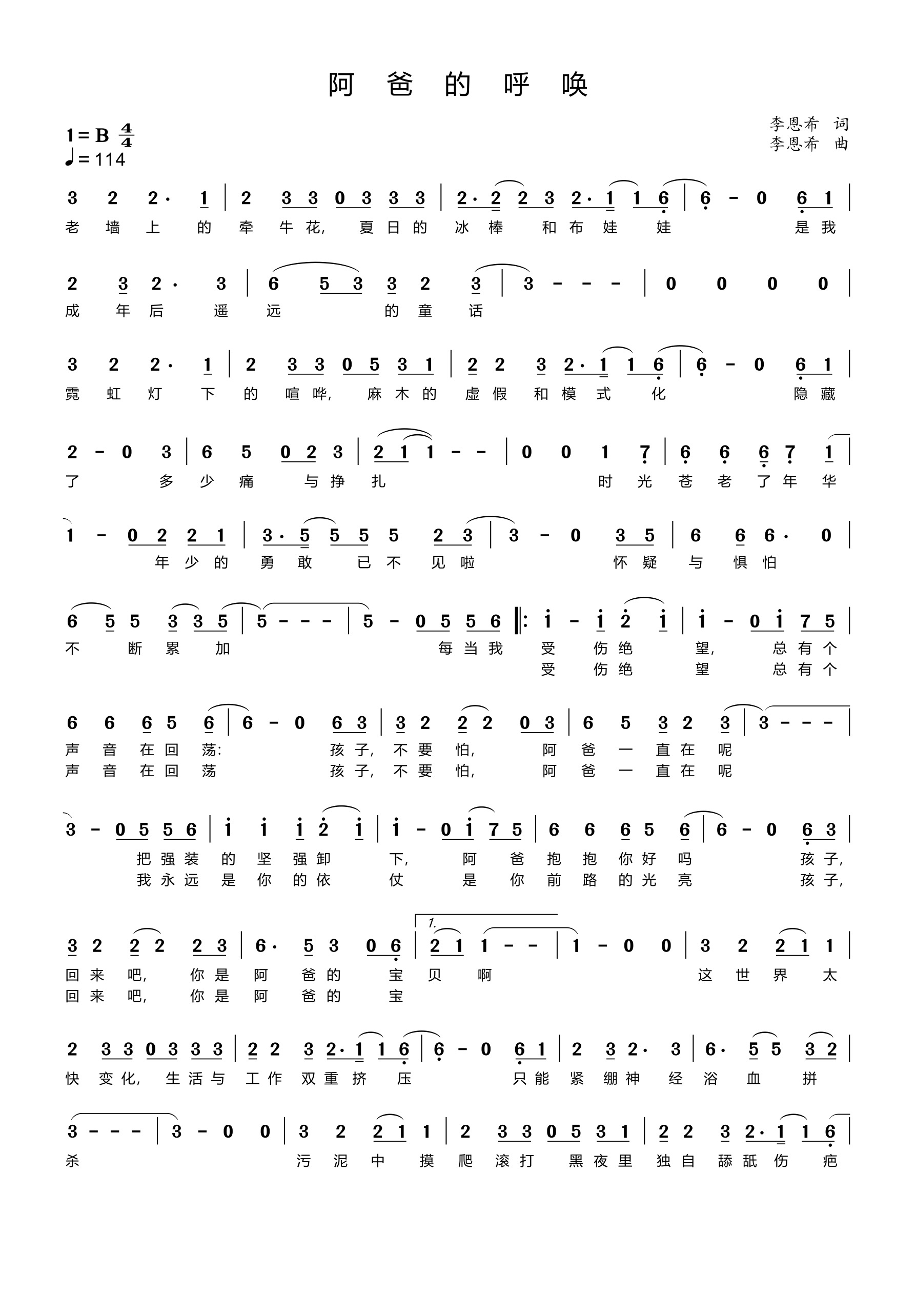阿爸的呼唤 词曲 恩希